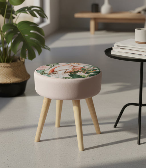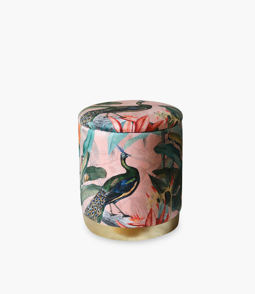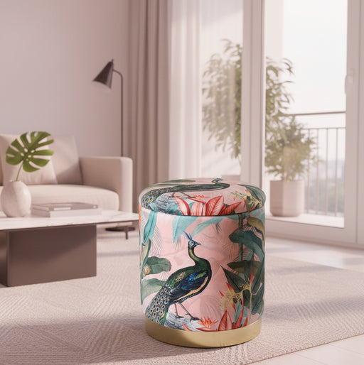 عرض التفاصيل الكاملةمقعد تخزين جانبي نورديك مخمل وردي برسمة طيور