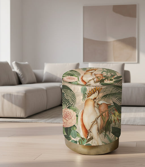 مقعد تخزين جانبي روومرز مخملي بيج برسمة طيور من مجموعة نورديك، قطعةٌ أنيقة تضيف جمالاً استثنائياً إلى أي مساحة. يتميز بخامته المخملية الناعمة ولو...