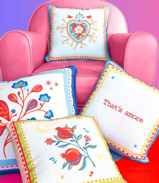 عرض التفاصيل الكاملةوسادة ماما ميا بوليستر برسمة نبات رمان ملوّنة - 45×45 سم