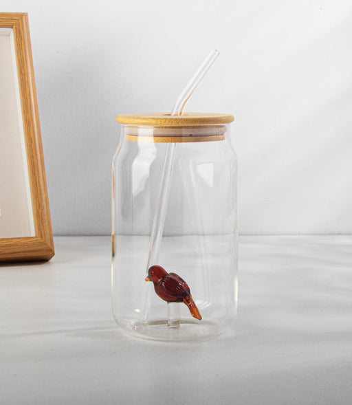 عرض التفاصيل الكاملةكوب كوكا كولا زجاجي مع مجسّم عصفور وغطاء وشفاطة - 7.5×13.5سم