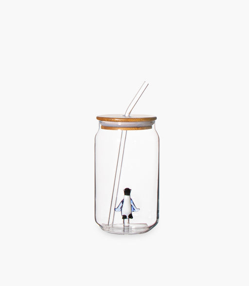 عرض التفاصيل الكاملةكوب كوكا كولا زجاجي مع مجسّم بطريق وغطاء وشفاطة - 7.5×13.5سم