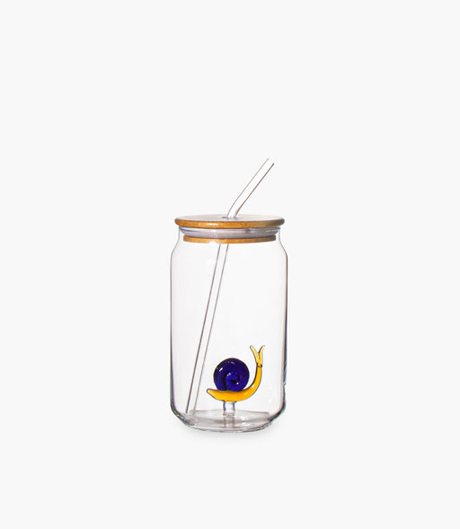 عرض التفاصيل الكاملةكوب كوكا كولا زجاجي مع مجسّم حلزون وغطاء وشفاطة - 7.5×13.5سم