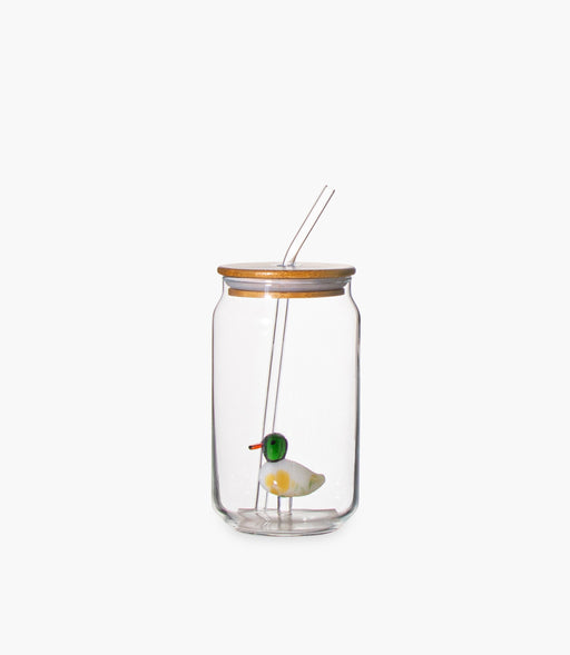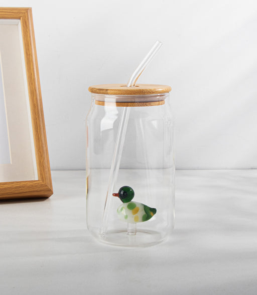 عرض التفاصيل الكاملةكوب كوكا كولا زجاجي مع مجسّم بطة وغطاء وشفاطة - 7.5×13.5 سم