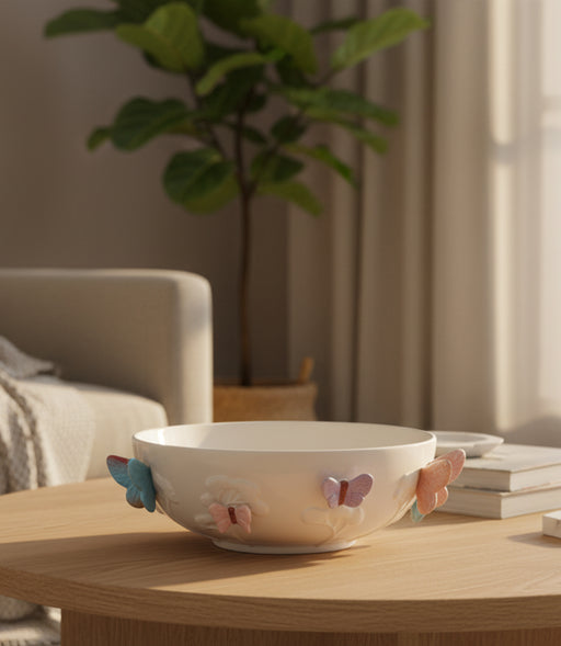 عرض التفاصيل الكاملةوعاء ديكور بترفلاي سيراميك بتصميم فراشات - 18.5×18.5×21 سم