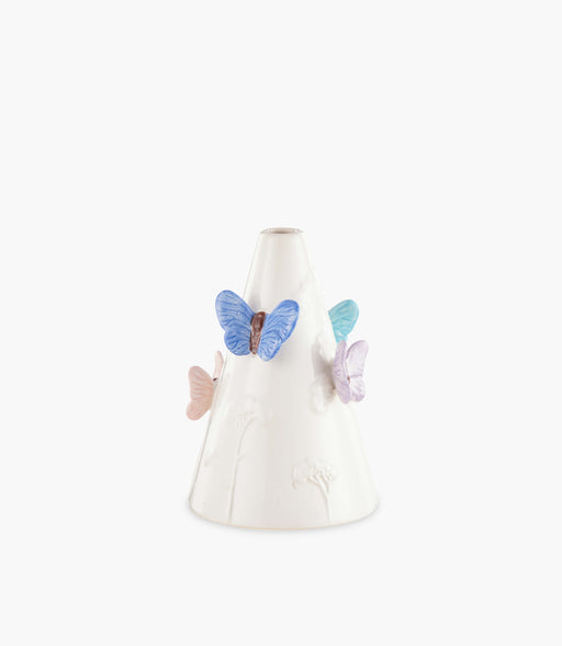 عرض التفاصيل الكاملةمزهرية مخروطية بترفلاي سيراميك مزينة بفراشات - 11×11×16.2 سم