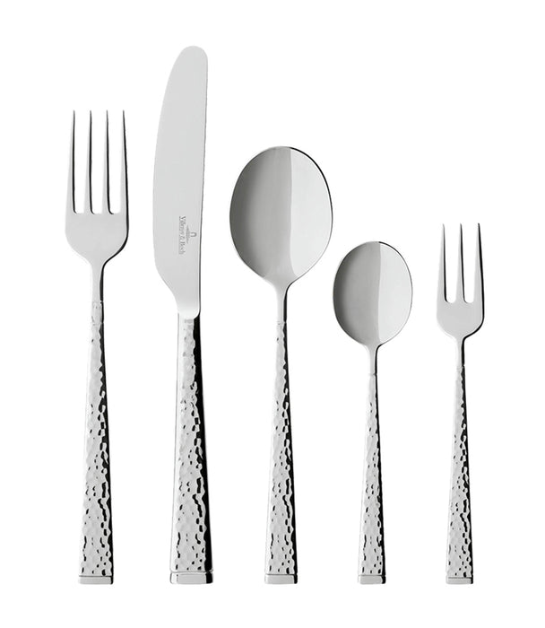 تتميز مجموعة بلاكسميث من فيليروي آند بوخ بصناعة معبرة وعالية الجودة وجميلة بشكل مثير للإعجاب، فهي حقًا تعرف كيف تلهم بخطوطها الجذابة وتصميمها التقليدي والريفي. إن مجموعة أدوات المائدة بلاكسميث المكونة من ٣٠ قطعة لستة أشخاص مصنوعة من الفولاذ المقاوم للصدأ عالي الجودة