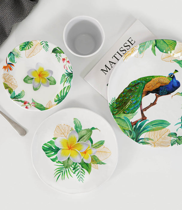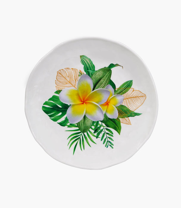 طبق سلطة ميلامين بنقشة الزهور ٢٣ سم - أبيض