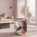 مقعد تخزين جانبي روومرز مخملي وردي برسمة طيور من مجموعة نورديك، قطعة أثاثٍ فريدة تجمع بين الأناقة والعملية.