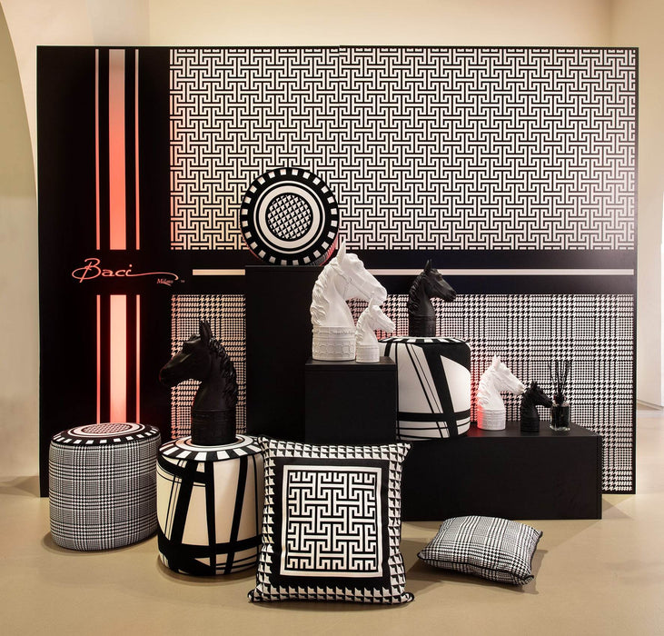 رأس الحصان ماكسي من مجموعة "اوبتيكال" عبارة عن زخرفة بوليرزين متقنة الصنع ترمز إلى القوة والأناقة والطاقة. هذه القطعة الأصلية والمكررة هي جزء من الخط "اوبتيكال" الجديد، الذي يتميز بأشياء أصلية للمنزل مع مفاصل مثالية وتباين مذهل بين الأسود والأبيض. مثالي لمنزل معاصر يبحث دائمًا عن أحدث الاتجاهات، رأس الحصان ماكسي المصمم بخبرة يقدم هدية رائعة لأصحاب المنازل الجدد أو هواة الجمع. تضيف علبة الهدايا إلى جاذبيتها رقي خلاب، مما يجعلها هدية ممتازة لعشاق الموضة ومحبي الخيول وحتى عشاق الشطرنج. أضف لمسة من الرقي إلى ديكورك مع رأس الحصان المذهل ماكسي من "باتشي ميلانو".