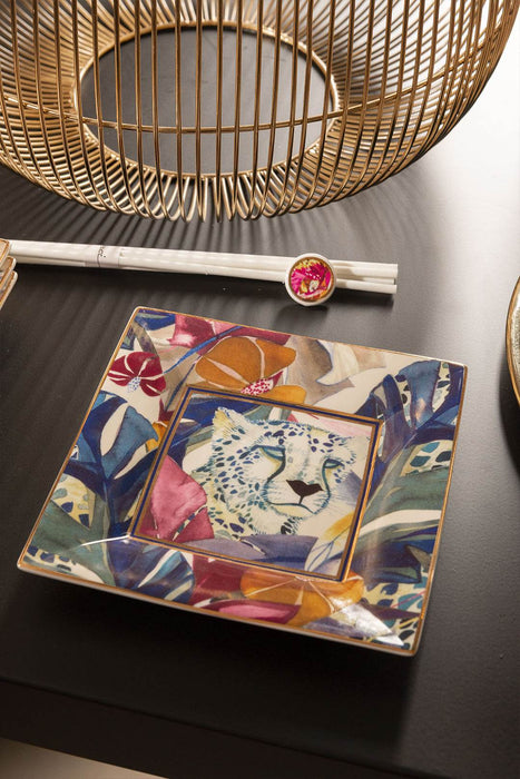 صينية الميلامين المربعة من "سافانا" هي إضافة جميلة وعملية لأي منزل. هذه الصينية المربعة مصنوعة من البورسلين العالي الجودة وتتميز بملمس أنيق يذكرنا بالجمال البري للسافانا. يتميز التصميم بفهد مهيب في المقدمة، محاطة بالزهور الملونة وأوراق الشجر التي تضيف لمسة من الرقي والبرية إلى أي بيئة منزلية. معبأة في علبة هدايا أنيقة من "باتشي ميلانو"، هذه الصينية هي منتج مثالي للمنازل المعاصرة التي تبحث دائمًا عن أحدث الاتجاهات. سواء كنت تستخدمه لتقديم الوجبات الخفيفة أو المشروبات أو ببساطة كعنصر زينة، فمن المؤكد أن هذه الصينية ستدلي ببيان في أي غرفة. هي أيضًا هدية مثالية للعائلة والأصدقاء الذين يقدرون جمال الطبيعة وأناقة التصميم المعاصر. إنه عنصر متعدد الاستخدامات وعملي سيحظى بتقدير أي شخص يحب الترفيه أو ببساطة إضافة لمسة من الرقي إلى منزله.