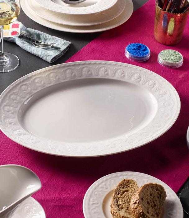 Cellini boasts delicate relief detailing on soft, white shapes, celebrating Renaissance architecture. The collection brings classic elegance to your table with its traditional gracefulness. Serve nibbles, fruit, vegetables or baked goods on this fine porcelain plate. Serve special delicacies on beautiful crockery.