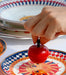 Feel genuine warmth spread across the table as you serve your baked goods on this Dolce Vita bread plate by Baci Milano. A sun motif centers the plate, bringing a radiant sense of warmth, while blue and red patterns surrounding it complete the design with a charming Italian touch. This design combination creates an eye-catching piece that captures attention and adds a delightful Mediterranean feel to every table it graces.