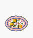 Perfect the art of presenting meals and make them truly inviting with Baci Milano’s Dolce Vita collection. This elegant oval plate, decorated with a vibrant lemon motif framed by gentle blue and purple tones, showcases intricate, delicate patterns that bring a touch of charm and sophistication, elevating the beauty of every meal served.