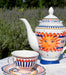 Embrace the charm of Italian presentation culture with this elegant teapot from the Dolce Vita Collection by Baci Milano. Nothing elevates an afternoon tea quite like this white teapot featuring a radiant sun at its center and simple red and blue patterns inspired by the golden warmth of the Mediterranean sunset and the natural sophistication of Italian style. It is a beautiful blend of artistry and tradition that brings a touch of Dolce Vita to every pour.
