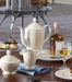 This coffeepot forms part of Villeroy & Boch's elegant and luxurious dinnerware collection Ivoire. Ivoire is a fine and noble porcelain made of high-quality bone china that amazes by its successful combination of white and cream as well as its by its nice patterm Every item of this range has been adorned by a golden coat making it look even more luxurious. The collection perfectly fits into a classic atmosphere as well as into the classic modern style and can be ideally completed with the matching cutlery, porcelain or table linen by Villeroy & Boch.