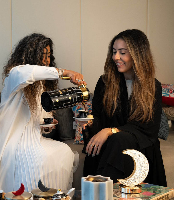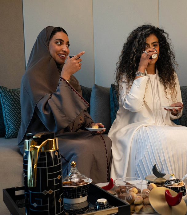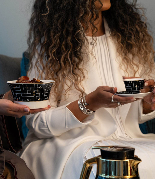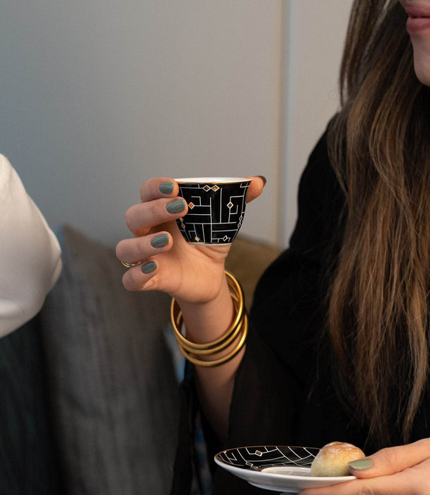 Elevate your coffee rituals with the Koofi Coffee Set, a beautifully crafted premium porcelain collection that brings timeless elegance to your table. This refined set includes delicately designed coffee cups and a matching tray, featuring a distinctive geometric pattern that reflects a rich cultural heritage. Perfect for both everyday enjoyment and special occasions, the Koofi Collection offers a seamless blend of classic charm and contemporary style.