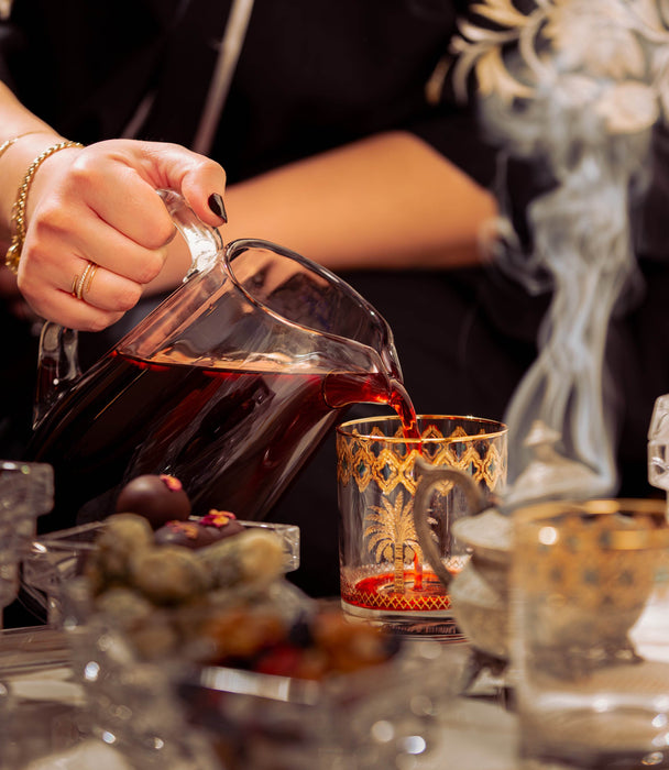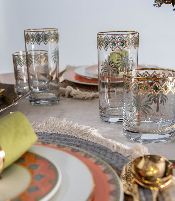 No design embodies the true Arabian Gulf spirit better than the Palm collection short drink glasses by Villeroy & Boch. This set of elegant tumblers is made from durable glass and showcases a vibrant palm motif with green and gold accents, adding a fresh and stylish touch to your drinkware.
