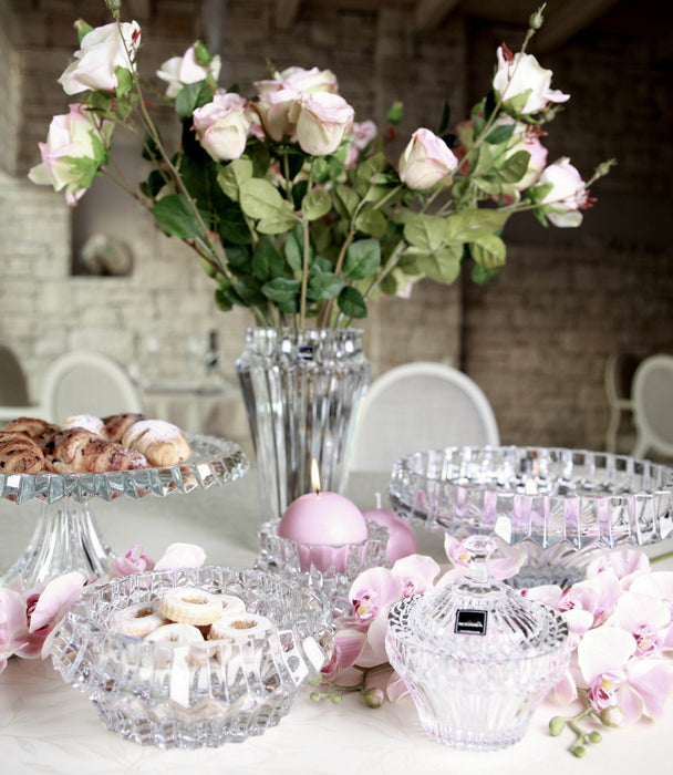 Small in size, big on impact. This 13cm crystal votive from Rogaska’s Crown Jewel collection turns a simple tealight or pillar candle into a shimmering focal point.