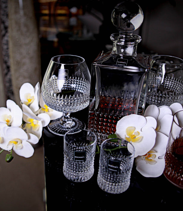 These Rogaska crystal glasses from the Diamond collection are perfect for enjoying your favorite drinks. The diamond design brings a little sparkle that makes them stand out on your table.