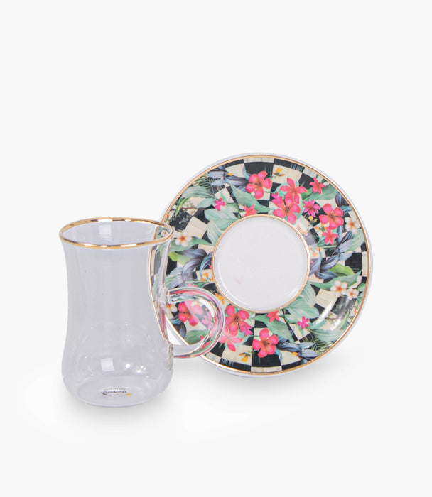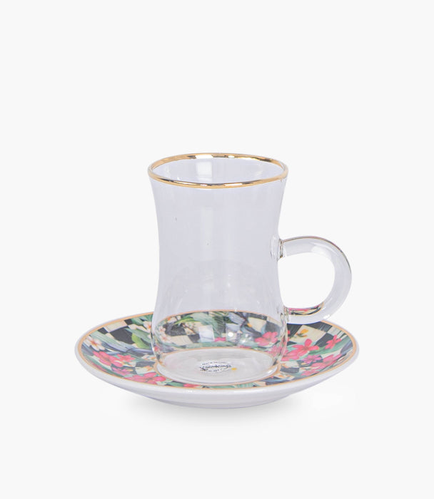 Scultura flower gold Glass Teacup & Porcelain Saucer (S/6)
