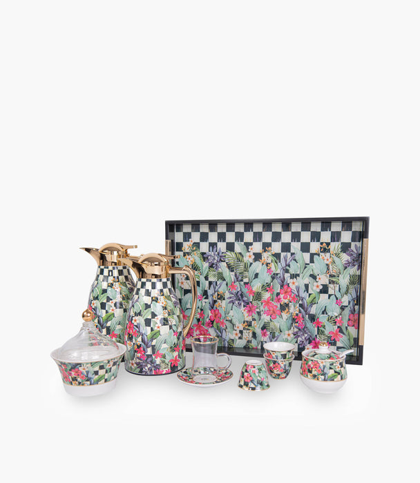 Experience tea time like never before with the Scultura collection tea set by Roomours, a perfect harmony of craftsmanship and design. This exclusive 12-piece set features crystal-clear glass teacups paired with floral checkered porcelain saucers that add sophistication to every detail. Made from premium-quality materials, it promises durability and an elevated tea-drinking experience. Whether you're serving guests or savoring a quiet moment alone, this exquisite set adds a vibe of refinement to your table. Ideal for those who appreciate beauty, tradition, and luxury.