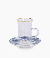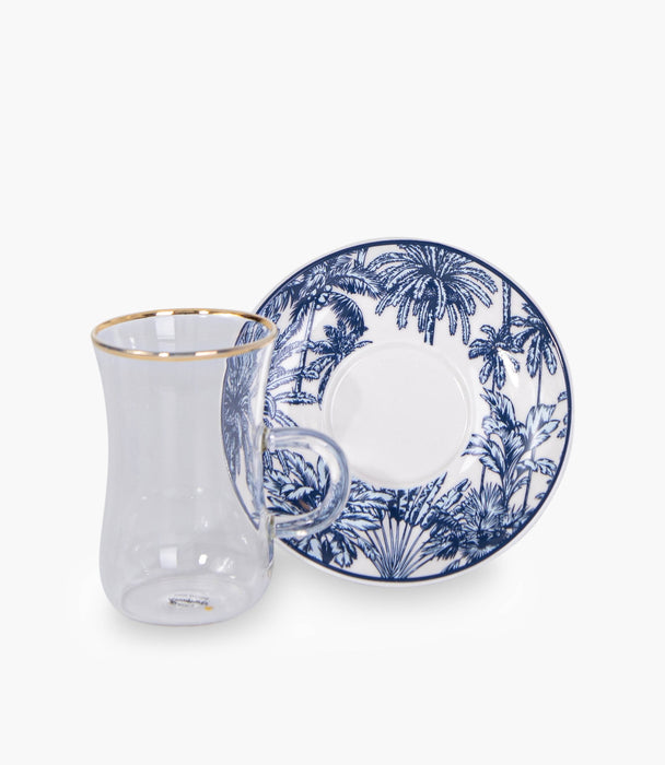 Summer Palm - White Plain Glass Teacup Porcelain Saucer(S/6)