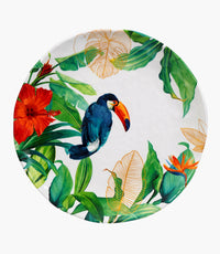 Make your dining table come alive and transport you and your family to the Amazon basin with the Toucan melamine 28 cm dinner plate. This colorful toucan icon within a palette of green foliage is ideal for the positioning of edible ornaments during meals with flavors such as ceviche or coconut curry. This strong, non-breakable plate will serve you well even if you entertain very energetic children at home or simply at home during fun parties and they are sure to warm up any dining table with their exotic aura. For those who cannot get to the tropics here is how you can bring the tropics to you.